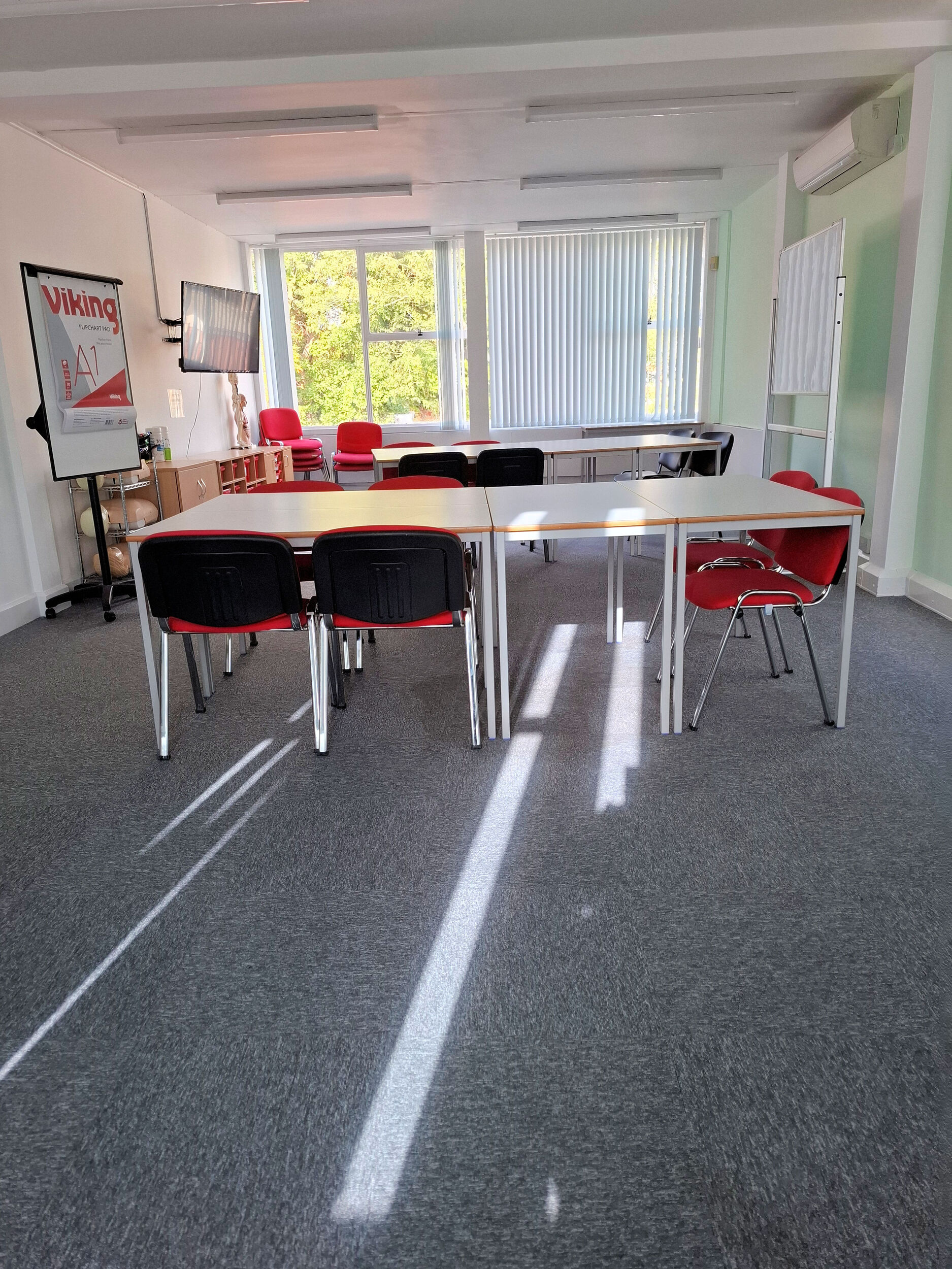 Training Room 1 is the largest of our rooms, and will seat 20 delegates in a U shape formation for meetings or training sessions. The room is light and airy with air conditioning, heating, laptop and two wall mounted TVs