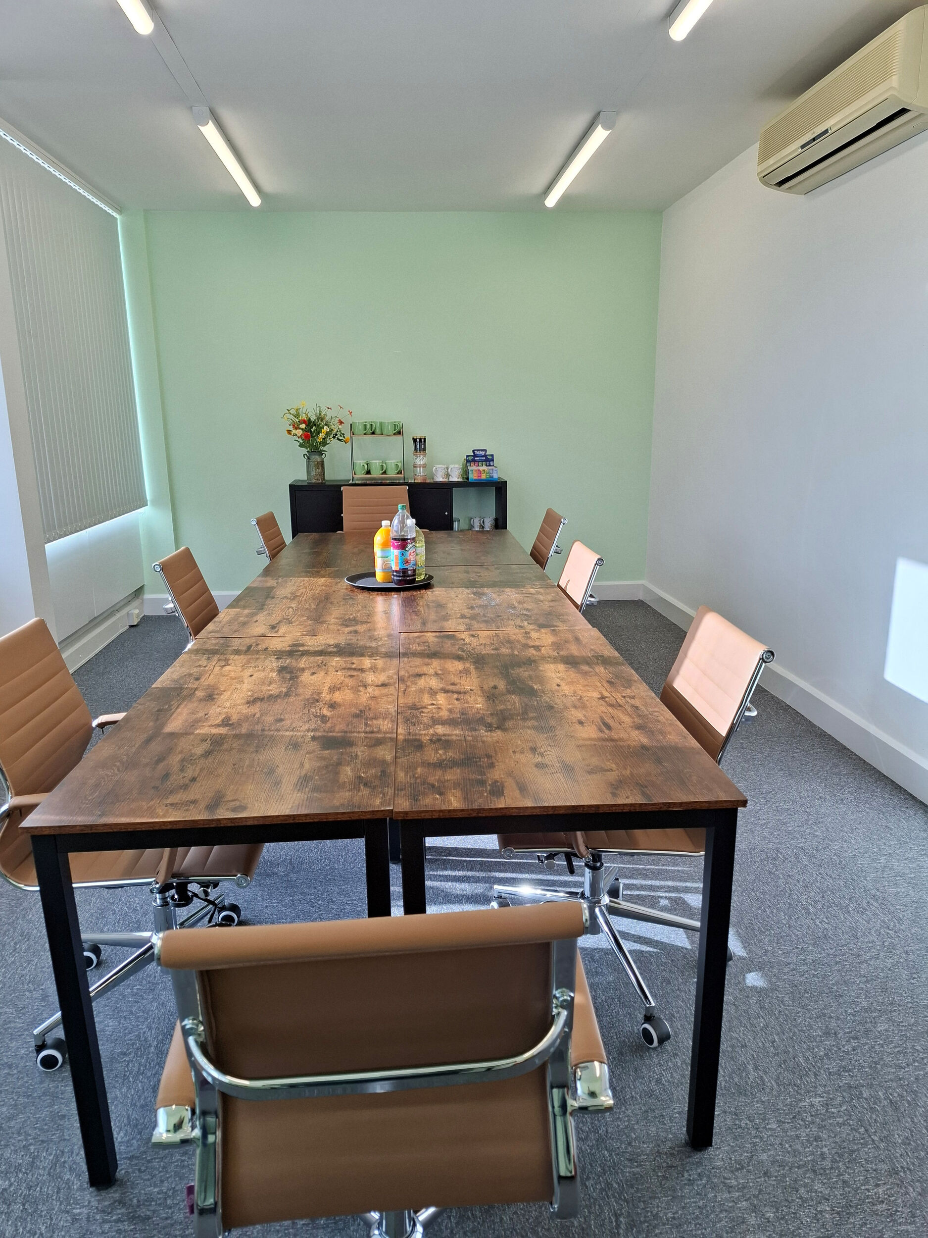 Training Room 2 seats 8 delegates around a boardroom style layout, has air conditioning and a free standing TV at the front of the room.